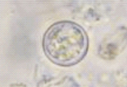 < Shields JM, Olson BH. Cyclospora cayetanensis: a review of an emerging parasitic