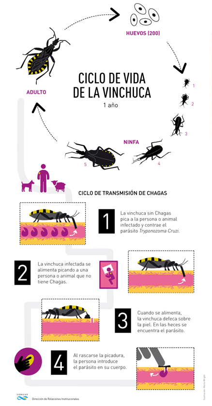 La enfermedad de Chagas es causada por un parásito unicelular microscópico llamado Trypanosoma cruzi, que se aloja en el interior de las vinchucas y es transmitido a los humanos a través de las heces de estos insectos al momento de picarlos.Según datos de la Organización Mundial de la Salud, la enfermedad se encuentra sobre todo en zonas endémicas de 21 países de América Latina entre ellos Argentina, donde se calcula que hay un millón y medio de personas infectadas.